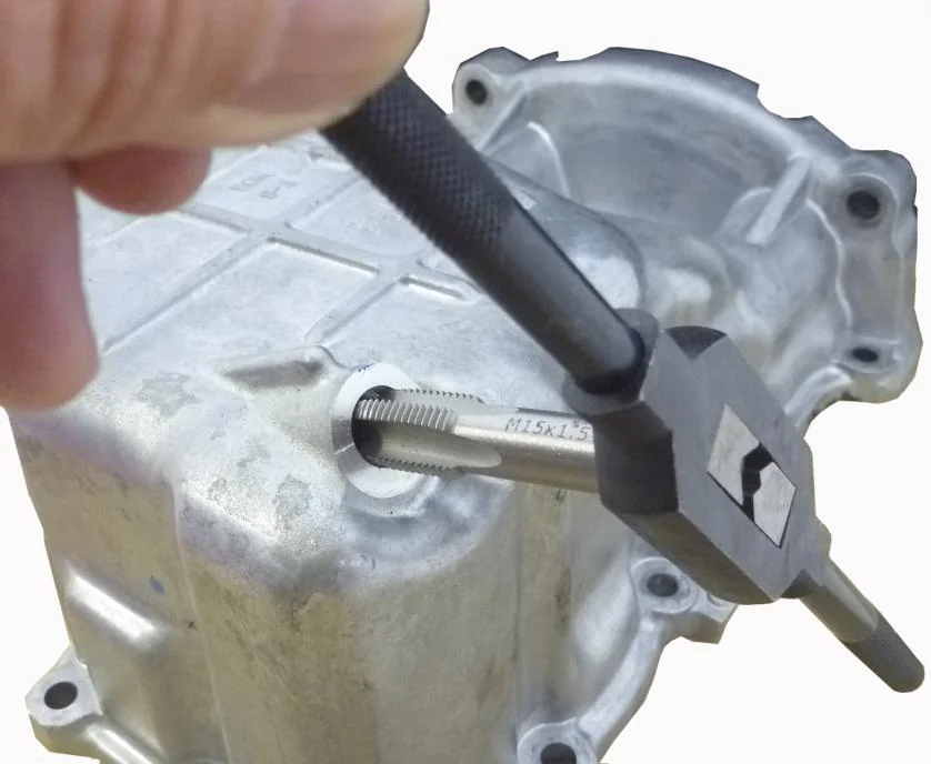| 商品説明 | 損傷したオイルドレンホールに1サイズ大きなネジを切りなおし、ドレンボルトも1サイズ大きなものを使用するための商品です。タップ、ドレンボルト、ワッシャーがセットになっています。加工後はドレンホールのサイズが大きくなります。元のドレンホールサイズに修正するものではありません。必ず適応ドレンサイズのものを使用してください。アルミ製のドレンパンに加工する場合、ネジ山が損傷しない様、切削油等を使用し慎重に加工してください。 |